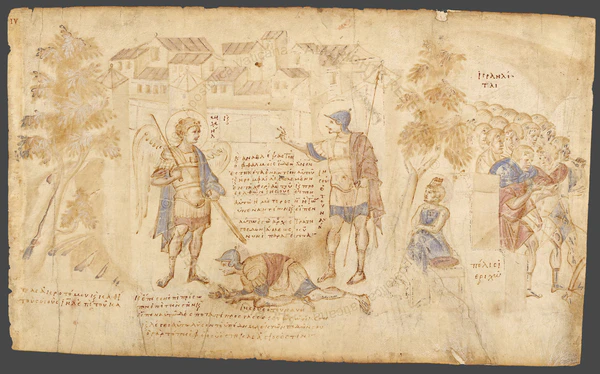 Сцена явления ангела Иисусу Навину известна по ранним иллюминированным рукописям[1]: