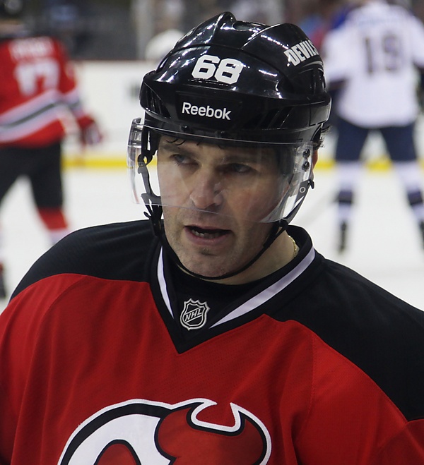 Став неограниченно свободным агентом, в июле 2013 года Яромир Ягр подписал однолетний контракт с «Нью-Джерси Девилз»[58]. Играя в составе «Нью-Джерси», Ягр продолжил своё восхождение в списке самых результативных хоккеистов в истории НХЛ. 21 ноября 2013 года Ягр забил гол, который стал его 121-м победным в регулярных чемпионатах, а также 690-м всего, тем самым он повторил рекорд Горди Хоу по победным голам и сравнялся с Марио Лемьё по общему количеству шайб[59]. 19 декабря он побил рекорд Горди Хоу по победным голам, шайба в ворота «Оттавы» стала 122-й победной в карьере Яромира[60]. Кроме того, Ягр обошёл Стива Айзермана и вышел на 8-е место в списке лучших снайперов НХЛ[61]. 8 января 2014, отдав результативную передачу в игре против «Филадельфии», Ягр сравнялся с Марио Лемьё по количеству набранных очков[62]. 14 января в игре с «Монреалем» Ягр забросил свою 695 шайбу и вышел на 7-е место среди снайперов, обогнав Марка Мессье[63]. 26 января в игре с «Рейнджерс» Ягр отдал две голевые передачи и вышел на десятое место в списке лучших ассистентов в истории НХЛ, обогнав Марио Лемьё[64].