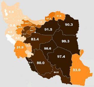 | 03 | Западный Азербайджан | 2 488 096 человек | 76,2 % | 3 265 219 человек (2016 г.) |