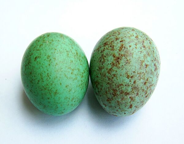 Поверхность яйца может быть шероховатой или гладкой, матовой или блестящей и почти любого цвета от тёмно-лилового и зелёного до чисто белого. У некоторых видов она покрыта крапинами, иногда образующими венчик вокруг тупого конца. Окрас птичьих яиц зависит от места и образа гнездования. Яйца многих скрытно гнездящихся птиц, а также многих домашних куриц белые, а у тех, кто откладывает их на земле, окраска скорлупы часто сливается с фоном из камешков или растительной ветоши, которыми выстлано гнездо[3]. Яйца птиц получают окрас за счёт пигментов ещё в половых путях самки. Например пигмент биливердин в хелатном соединении с цинком придаёт яйцу зелёный или голубой окрас, а протопорфирин даёт красный, коричневый окрас, или пятна таких цветов[4].