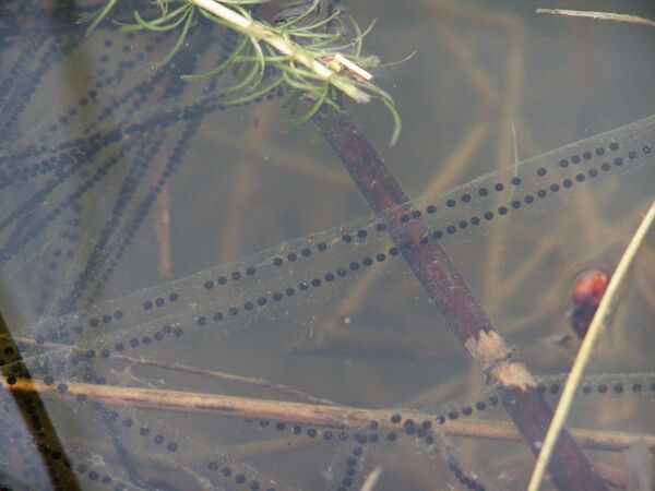 Яйца земноводных могут развиваться только в воде (у некоторых видов — в теле одного из родителей), где они защищены от высыхания. Из внешней среды зародыши получают микроэлементы, необходимые для развития. Только у жаб-повитух яйца находятся в воздушной среде — самец носит ленты икры намотанными на свои бёдра[12]. В воде или влажной среде проходит личиночная стадия развития земноводных[13].