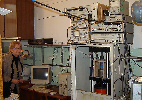 - Обнаружено изменение характера спектральной составляющей сигнала сопутствующего разрушению горных пород — показала в лабораторных условиях, что при разрушении горной породы возникает электромагнитное излучение, а также показала, что в процессе разрушения образцов горных пород, на разных стадиях разрушения спектр регистрируемого сигнала меняется от низкого диапазона частот к верхнему диапазону частот, а затем снова к низкочастотному диапазону[14]. Полученные результаты были заложены в исследование сигналов электромагнитного излучения в шахтах с помощью приборов РЭМИ[15]. Результаты исследований показали, что изучение спектральных характеристик сигнала сопутствующего процессу разрушения горных пород позволяет разрабатывать методы прогнозирования горных ударов.
