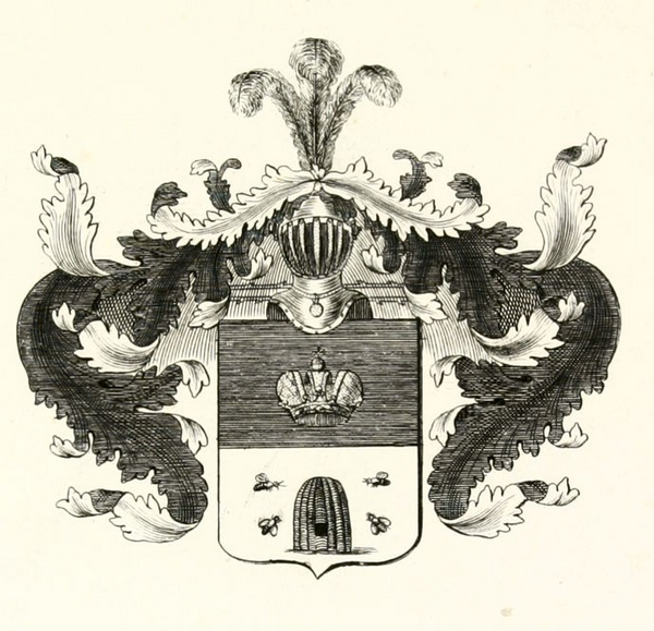Герб коллежского советника Андрея Яковлева: в щите, разделенным надвое, в верхнем голубом и нижнем красном полях находится серебряный улей с четырьмя вокруг него пчелами, из которых две золотые и две серебряные. Щит увенчан дворянскими шлемом повернутым вправо и короной, на поверхности которой видно пылающее сердце с золотой на середине его звездой. Намёт на щите голубой и красный, подложенный серебром[3].