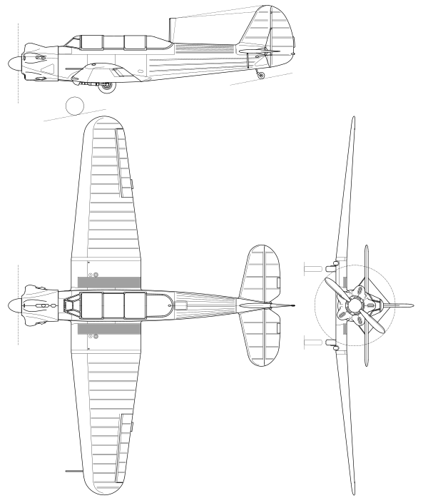 Запуск двигателя, уборка и выпуск шасси, управление посадочным щитком и тормозами колёс осуществляются от основной воздушной системы самолёта. Запас сжатого воздуха размещён в двух основных баллонах ёмкостью по 12 литров и в баллоне аварийной системы ёмкостью 3,0 литра. Проводка управления силовой установкой выполнена тягами полужёсткого типа с шаровыми и вильчатыми наконечниками.[3]