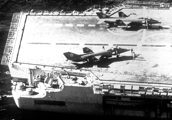 В мае 1976 года шесть строевых лётчиков получили допуск на полёты с палубы корабля. В этом же году проводятся испытания авиационного вооружения самолёта на предмет безопасности эксплуатации с учётом морской специфики на полигоне Багерово, и на борту ТАКР «Киев».