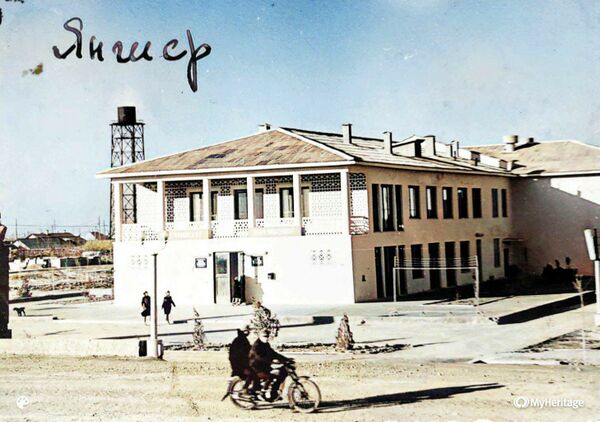 Возник в 1957 году в связи с освоением Голодной степи[1][2]. Название переводится с узбекского как «новая земля». Расположен на пересечении Большого узбекского тракта (автодорога M-39) и Южного Голодностепского канала имени Саркисова.