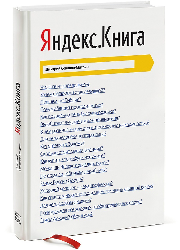 Это первая книга про Яндекс, где описана не просто канва событий, которую можно узнать из наших интервью, выступлений и пресс-релизов, а команда Яндекса, дух и смысл наших действий, наш понедельник, начинающийся в субботу. Автор понял это и сумел рассказать другим. Для миллионов наших пользователей, как и для нас, Яндекс — существо одушевлённое и симпатичное, и книга позволяет узнать его поближе