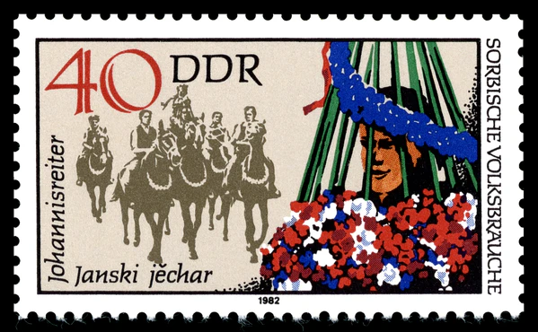 Обычай связан с древним славянским культом плодородия. Главным персонажем праздника является большая фигура всадника, который считается святым Иоанном, символизирующим плодородие и жизнь. Фигуру украшают красочной цветочной одеждой и на её голову водружают цветочную корону с гирляндами, закрывающую почти всё лицо фигуры. Для украшения используются большое количество соцветий васильков, кувшинок, гвоздик и других цветов. Это украшение делается девушками за несколько дней до праздника. В день праздника фигуру до полудня украшают и после несут в начале процессии всадников на специально приготовленное поле, где устраивается соревнование. Фигура устанавливается на специальном месте и на противоположном от неё месте поля выстраиваются всадники, которые по специальной команде устремляются перед зрителями к фигуре, чтобы сорвать с неё как можно больше цветов. Считается, что количество сорванных с фигуры цветов определяет удачу в следующем году. Вечером девушки устраивают своё празднество, украшая повторно фигуру своими цветами.
