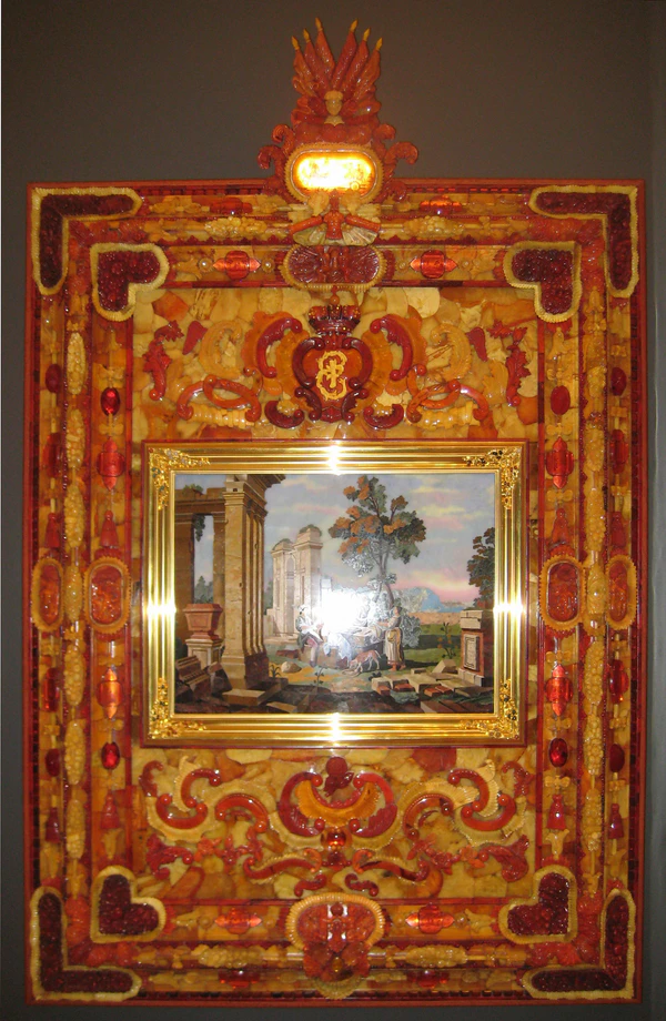 Сохранившиеся подлинные фрагменты Янтарной комнаты (собрание Эрмитажа):