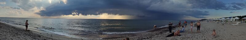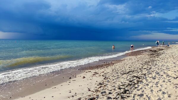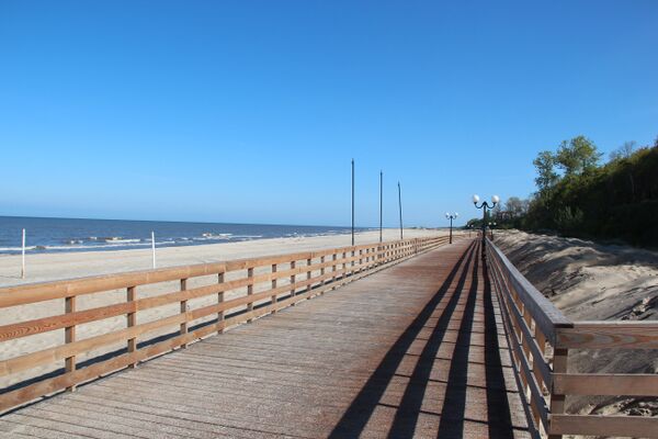 Рядом с посёлком находятся самый широкий в Калининградской области песчаный морской пляж, (ширина пляжа не уменьшается вдоль береговым течением, так как он постоянно подпитывается пульпой янтарного комбината. Пляж Янтарного стал первым в России получившим «Голубой флаг»[32]. Флаг присуждён на период с 1 июня по 1 сентября 2016 года для участка пляжа площадью порядка трёх гектар, расположенном в живописном месте возле бывшей шахты добычи янтаря Анна. В последующие годы пляж ежегодно получал «Голубой флаг». В 2019 году второй пляж Янтарного расположенный рядом с парком Беккера также был удостоен «Голубого флага»[33]. На пляжах Янтарного после штормов можно найти кусочки янтаря, сбором которых часто занимаются туристы. Такой сбор не запрещён законом: наказание предусмотрено только за добычу янтаря, то есть выкапывание его из земли или морского дна[34].