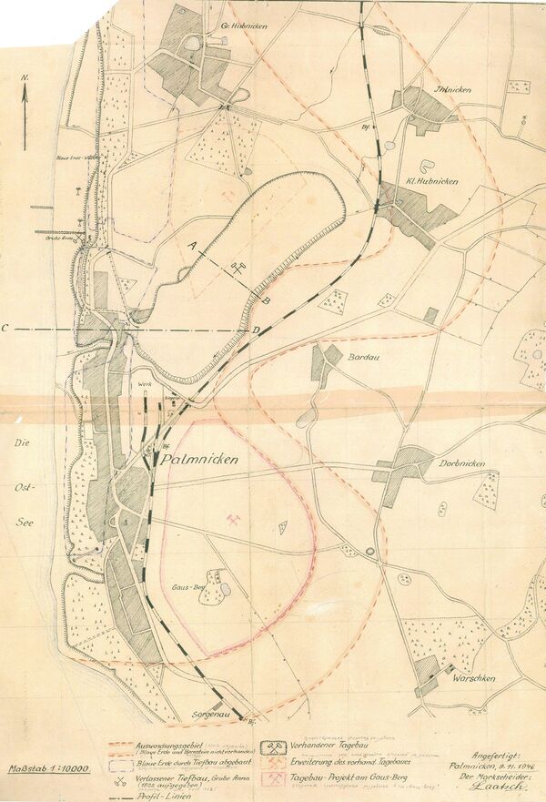 После Второй Мировой войны Пальмникен передан СССР и переименован в Янтарный. Прекратившаяся было добыча янтаря возобновляется в 1947 году[13].