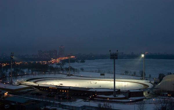 Стадион располагается на берегу Москвы-реки в Большом строгинском затоне. В 700 метрах от стадиона располагается станция метро «Строгино»