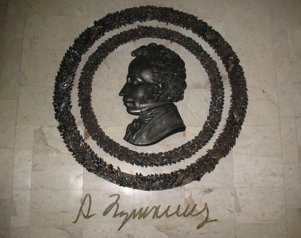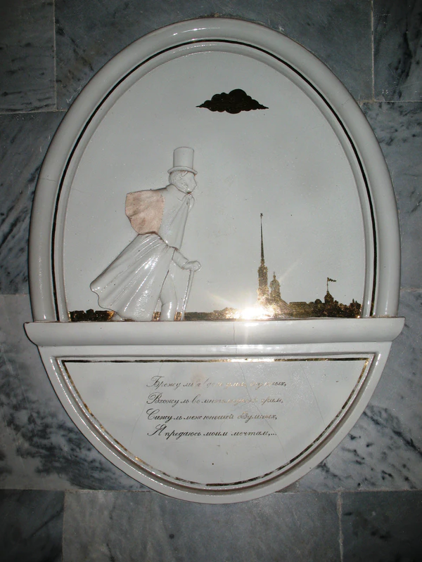 Архитектура станции отражает тему, связанную с именем великого поэта, невольно напоминая нам архитектуру дворцов и театров пушкинских времен. Облицовка пилонов в форме ниспадающих складок материи, белые мраморные стены на фоне темно-серых полов, декоративные решетки вентиляции, позолоченные светильники как нельзя более воссоздают интерьеры начала позапрошлого столетия. Композицию станционного зала завершает классический профиль поэта, обрамленный лавровым венком