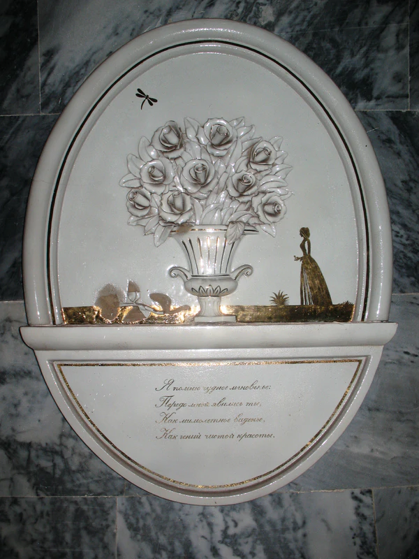Дополняют картину декоративные композиции из рельефных элементов на темы «Пушкин на Украине» и «Творчество Пушкина». Выполненные из бронзы, фаянса, кованого металла, они размещены на стенах вестибюля и платформы. Название станции на путевых стенах также состоит из позолоченных прописных букв, стилизованных под интерьер станции.