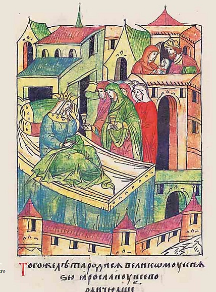 «которая, как бы в знак почёта, дала ему есть и пить из собственной руки; и он вернулся в своё помещение, тотчас же занедужил и умер спустя семь дней, и всё тело его удивительным образом посинело. Поэтому все верили, что его там опоили, чтобы свободнее и окончательнее завладеть его землёю. И доказательством этому служит то, что мать императора, без ведома бывших там его людей, поспешно отправила гонца в Руссию к его сыну Александру, чтобы тот явился к ней, так как она хочет подарить ему землю отца. Тот не пожелал поехать, а остался, и тем временем она посылала грамоты, чтобы он явился для получения земли своего отца. Однако все верили, что если он явится, она умертвит его или даже подвергнет вечному плену[19]».