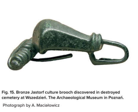 В середине III в. до н.э. происходят глубокие изменения в жизни носителей ясторфской культуры. В основном, они связаны с контактами с кельтским населением, появившимся к тому моменту к югу от зоны их расселения. В кельтском[30] поселении Нова Череквиа (Nowa Cerekwia) обнаружены следы торговли янтарём – с территории, прилегающей к Балтийскому морю, солью, болотным железом. Кельты также могли служить посредниками в привлечении своих северных соседей на военную службу в качестве наёмников для своих южных соседей, эллинистических государств и Рима, о чём могут свидетельствовать греческие и кельтские монеты в центральной Польше. Естественно, вследствие плотных контактов увеличивалось производство железа на территории центральной Польши, в том числе и в контексте ясторфской культуры. Рядом с болотами Мазовше (Mazowsze) открыто множество относящихся к этому времени ям, в которых выплавляли железо. Ястфорские кузнецы стремительно заимствовали кельтские технологии добычи и обработки железа.