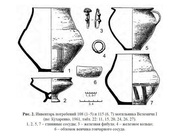 5) значительная часть погребений, но не большинство, сопровождаются застёжками (булавками или позднее – фибулами) для одежды и поясными крючками