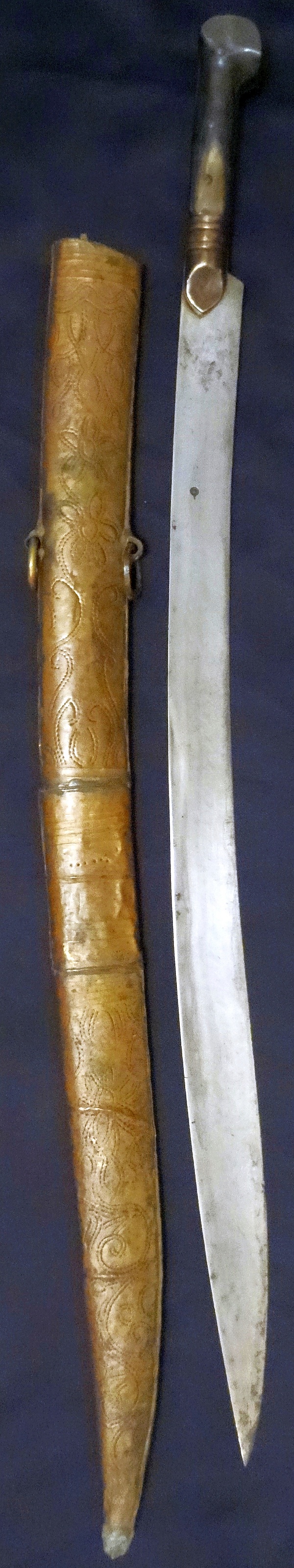 - Ятаган восточной Анатолии (территория современного Кавказа), его особенность небольшая длина и изгиб лезвия, строгость формы, простота отделки[5]. Изготавливалась рукоять чаще всего из метала, „уши“ широко расставлены. Надписи сделаны с ошибками и неаккуратно[5].