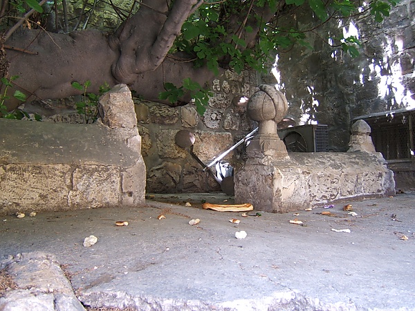 Сразу же внутри ворот, за железным решётчатым ограждением слева, находятся две могилы. Считается, что это — могилы двух архитекторов, которым Сулейман поручил строительство стен Старого города. Согласно легенде, когда Сулейман увидел, что архитекторы оставили гору Сион и гробницу царя Давида вне замкнутой стенами территории, — он приказал убить их. Однако, из уважения к их впечатляющим достижениям, он захоронил их внутри стен рядом с Яффскими воротами[5].