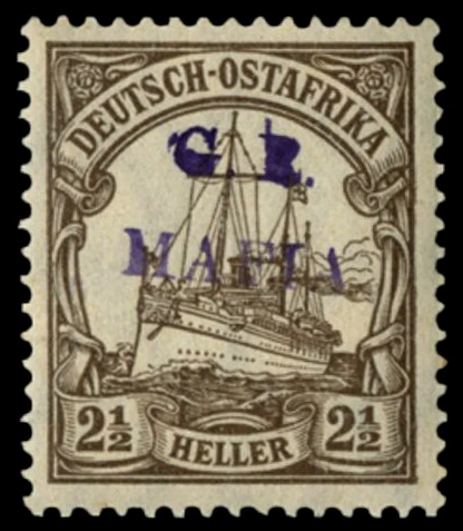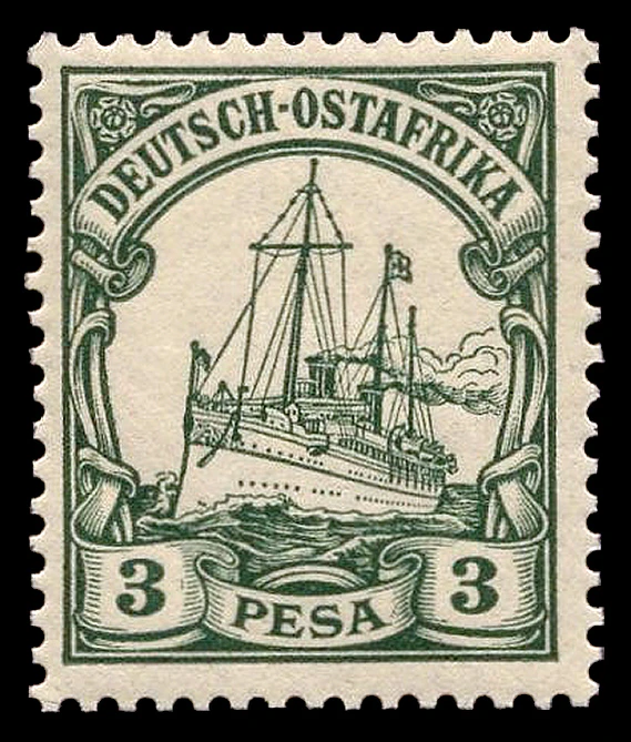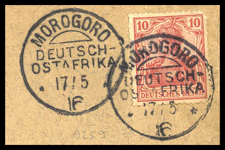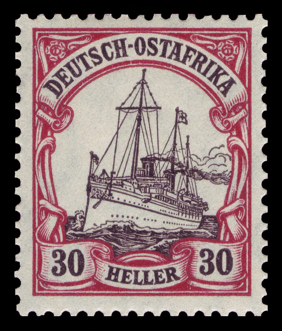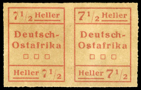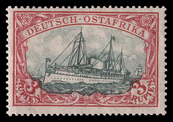 С началом Первой мировой войны боевые действия между Центральными державами и Союзниками развернулись и в колониях Германской империи. В ходе продолжительных боевых действий в Германской Восточной Африке неожиданной добычей администрации этой колонии стали запасы почтовых марок серии «Германия», находившиеся для обеспечения почтовых потребностей экипажа на потопленном союзниками в июле 1915 года в результате неравного боя в устье реки Руфиджи германском лёгком крейсере «Кёнигсберг»[17].