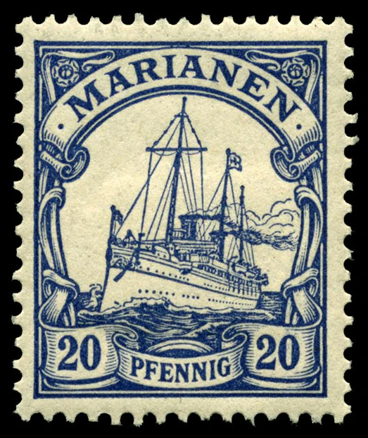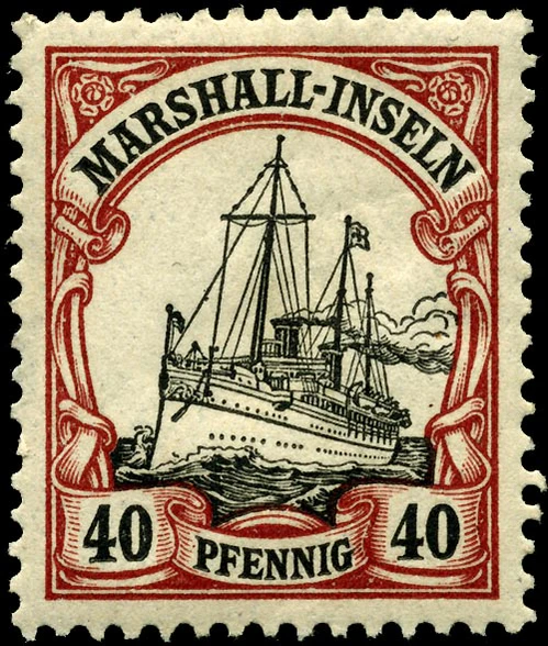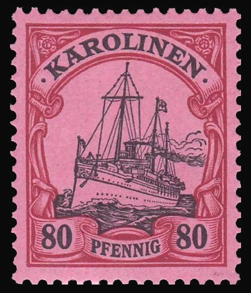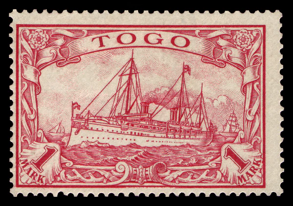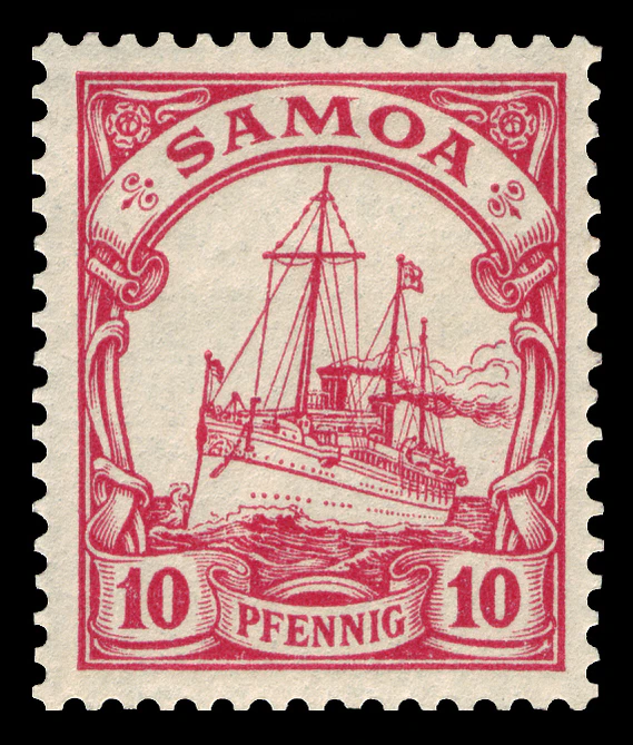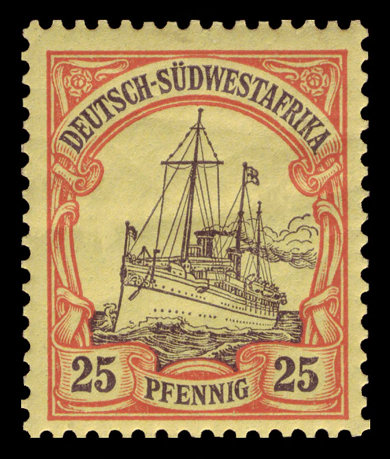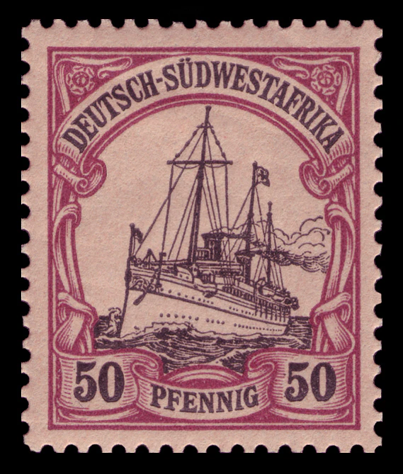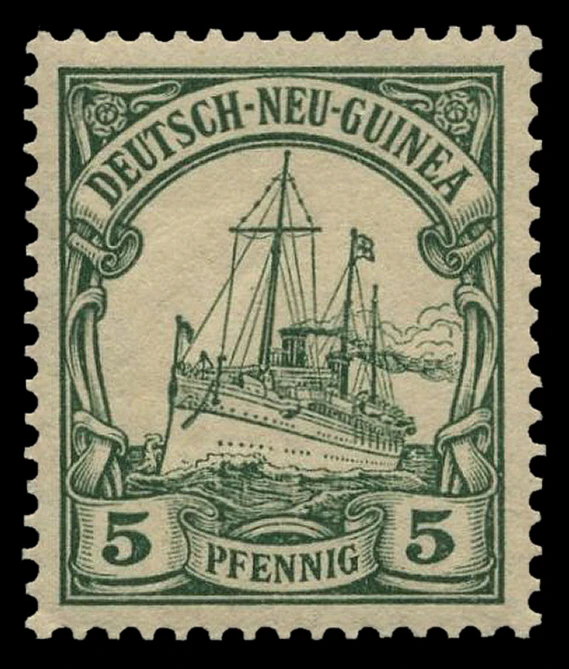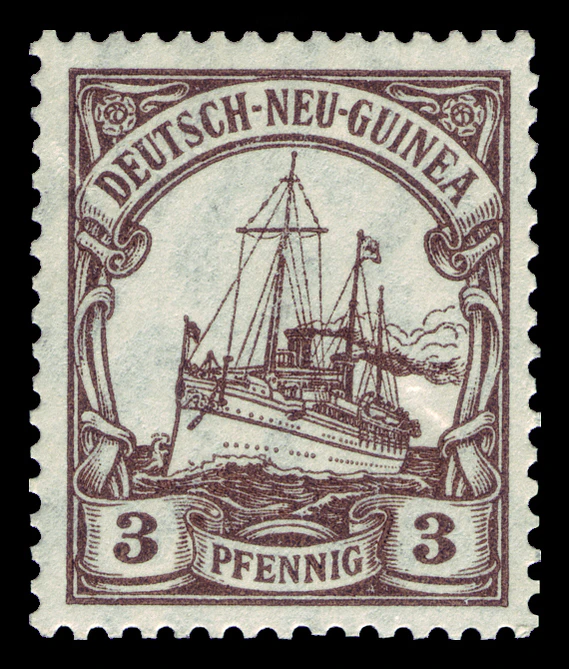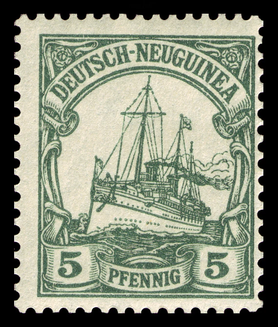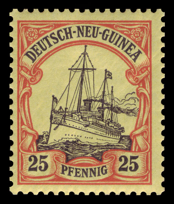 На рубеже 1900—1901 годов одновременно с выпуском в обращение в самой Германской империи новой серии стандартных почтовых марок «Германия» (нем. Germania) для всех её заморских колоний была издана первая серия оригинальных аналогичных марок с изображением кайзеровской яхты «Гогенцоллерн». Серия имела общий сюжет, но, как и «Германия», два отдельных дизайна[en] для номиналов в пфеннигах (яхта анфас) и в рейхсмарках (яхта сбоку), причём цветовая гамма обеих серий («Германия» и «Яхта») гармонировала[6].