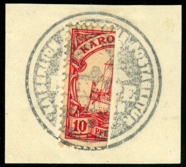 Такое франкирование почтовой корреспонденции производилось только один день 12 июля 1910 года, причём одновременно рядом с наклеенным провизорием ставился заверяющий законность выпуска оттиск официальной печати почтового отделения. Поскольку за год до этих событий Понапе получил новую официальную печать взамен старой, их оттиски образца 1905 и 1910 годов отличаются. В первом случае кегль шрифта слова Karolinen меньше и оно оказывается короче слова Ponape, во втором случае — наоборот, длиннее[14].