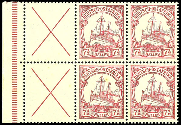 Колониальные власти приняли решение использовать корабельные «Германии» как служебные марки для франкировки посылок и бандеролей и распределили спасённый тираж (совокупно около 11 тыс. штук) по восьми крупнейшим почтовым отделениям Германской Восточной Африки. При этом номиналы серии «Германия» (в пфеннигах) были директивно переназначены в местной валюте, геллерах, следующим образом[17]: