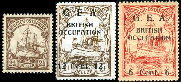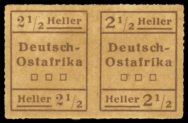 Определить их использование именно в той или иной колонии можно только по почтовому гашению с обозначением города и/или колонии. Описанные почтовые провизории называют «марками-предшественницами»[5]. В Германской Восточной Африке с 1893 года применялись стандартные имперские почтовые марки с надпечатками номинала в пезах и рупиях, местной валюте[6].