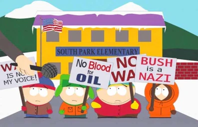 Мистер Гаррисон пытается провести урок в начальной школе Южного парка. Однако в этот момент рядом со школой проходят митинги сторонников и противников войны в Ираке. Мистер Гаррисон говорит, что если дети хотят поучаствовать в митинге, то могут уйти. Все дети тут же, чтобы не решать задачки по математике, уходят, под предлогом участия в митингах. Однако на улице к Кайлу, Стэну, Кенни и Картману подходят журналисты, которые спрашивают детей: чью они сторону поддерживают? Дети ничего не могут ответить. Разозлённый Гаррисон даёт детям домашнее задание — написать сочинение «Что бы сказали об Иракской войне Отцы-основатели США». Но Картман, вместо того чтобы писать сочинение, решает отправиться в прошлое — во времена американской революции. Для этого он прыгает в ванную с включённым феном. От удара током он впадает в кому, во время которой он попадает в прошлое, где присутствует на собрании отцов-основателей. Там он узнаёт, что так и было задумано, Америка должна говорить одно, а делать другое, что «Флаг лицемерия» должен развеваться и далее, чтобы страна вела войны, а часть её жителей могла против них протестовать, таким образом люди всего мира ненавидели бы не все США, а только правительство или часть американского населения. После этого Картман выходит из комы, прибегает на место, где митингуют сторонники и противники войны и сообщает им о том, что он узнал. Сторонники и противники войны мирятся и дружно поют песню про то, что этот эпизод является сотым в сериале. Эпизод заканчивается словами Кайла, глядящего на поющую толпу: «Я ненавижу этот город. Как же я его ненавижу!».