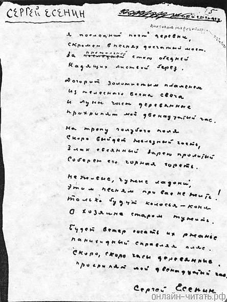 «Я после́дний поэ́т дере́вни…» — стихотворение Сергея Александровича Есенина, написанное в 1920 году.