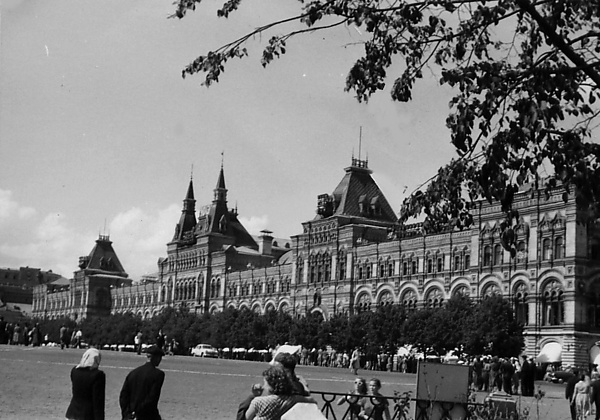 В число достопримечательностей Москвы, показанных в картине, входит ГУМ. Оказавшись среди группы туристов на Красной площади, Колька, подражая интонациям профессионального экскурсовода, предлагает гостям «посмотреть налево» и оценить Государственный универсальный магазин как «яркий пример вычурной псевдорусской архитектуры конца XIX столетия». В самом ГУМе было снято несколько эпизодов. Появление киногруппы вызвало большое оживление среди покупателей — по воспоминаниям Никиты Михалкова, толпа посетителей начала собираться вокруг артистов как раз в тот момент, когда осветители только приступили к установке аппаратуры. Чтобы погасить возникший ажиотаж, Данелия предложил коллегам принести запасную камеру и организовать инсценировку съёмочного процесса в дальнем углу магазина. Благодаря этому манёвру площадка на втором этаже, необходимая для съёмок, освободилась. Покупатели ГУМа, не зная, что они находятся в объективе работающих камер, вели себя естественно и свободно общались с продавцами и друг с другом[91][92].