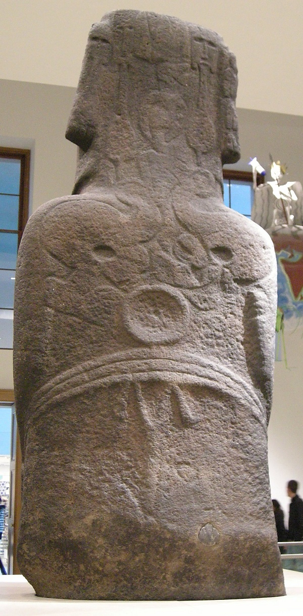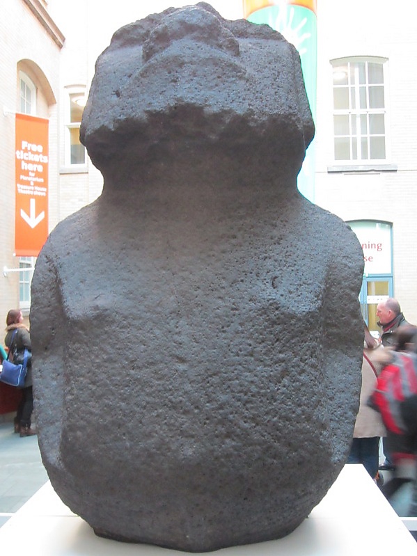 - Тип 4 — представлен большим количеством торсов, прототипов статуй Среднего периода. Изготовлены из твёрдого, плотного чёрного или серого базальта, из красноватой пемзы, из туфа Рано Рараку и муджиерита. Отличаются выпуклым и даже заострённым основанием. То есть они не предназначались для установки на постаменты. Их вкапывали в землю. Они не имели отдельного пукао и удлинённых мочек ушей. Три прекрасных образца из твёрдого базальта и муджиерита были вывезены и находятся в Британском музее в Лондоне, в Музее Отаго в Данидине и в брюссельском Музее пятидесятилетия.[16]