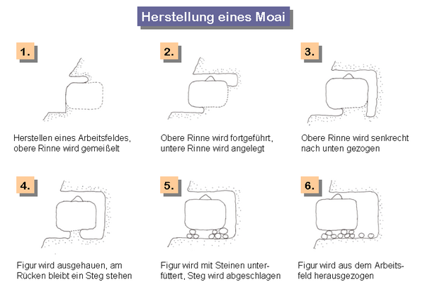Очевидно, что изготовление и установка моаи было очень трудоёмким и затратным делом, и европейцы долго не могли понять, кто изготавливал статуи, каким инструментом и как они перемещались.