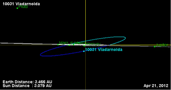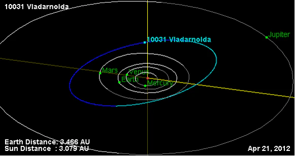 Орбита астероида Владарнольда и его положение в Солнечной системе