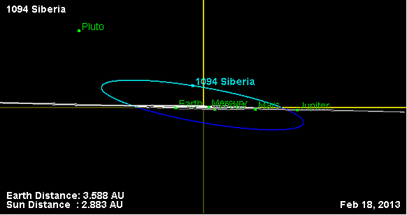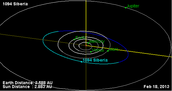 Орбита астероида Сиберия и его положение в Солнечной системе