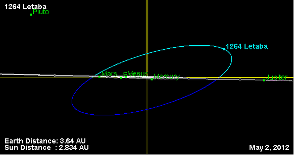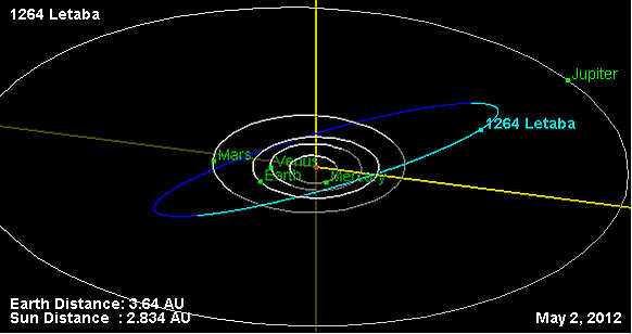 Орбита астероида Летаба и его положение в Солнечной системе