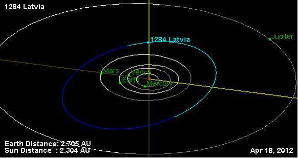 (1284) Латвия вращается вокруг Солнца в среднем главном поясе и приближается на расстояние 2,2-3,1 а. е. раз в 4 года и 4 месяца (1 572 дня). Его орбита имеет эксцентриситет 0,17 и наклон 11° по отношению к эклиптике[3].