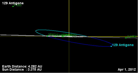Орбита астероида Антигона и его положение в Солнечной системе