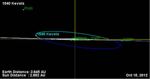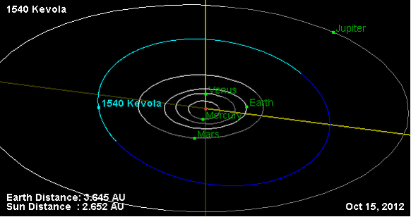 Орбита астероида Кевола и его положение в Солнечной системе