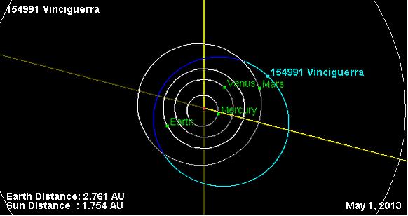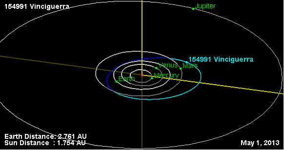 Орбита астероида Винчигуэрра и его положение в Солнечной системе
