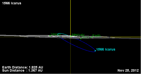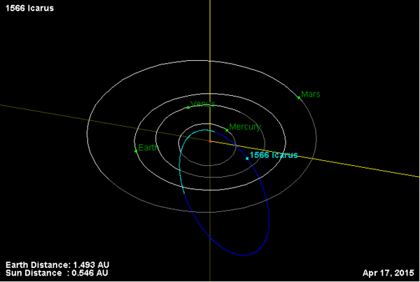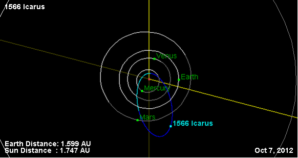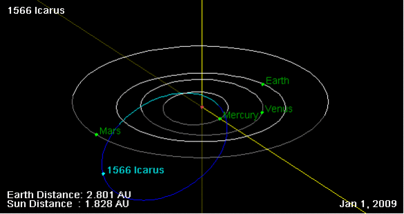 Орбита астероида Икар и его положение в Солнечной системе