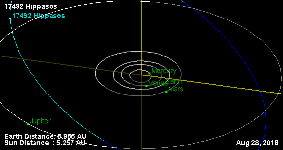 Орбита астероида Гиппас и его положение в Солнечной системе