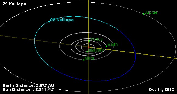 Орбита астероида Каллиопа и его положение в Солнечной системе