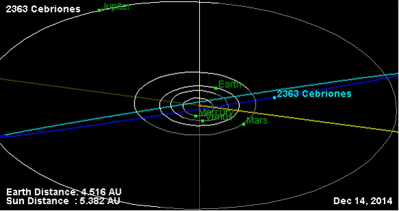 Орбита астероида Кебрион и его положение в Солнечной системе