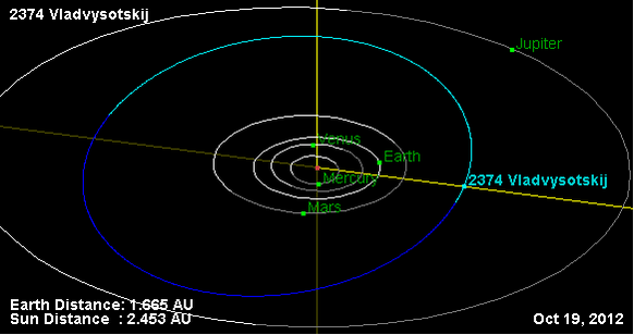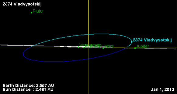 Орбита астероида Владвысоцкий и его положение в Солнечной системе