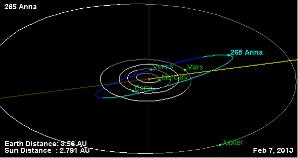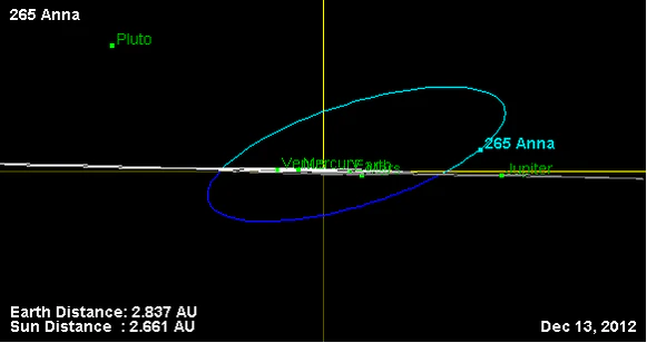 Орбита астероида Анна и его положение в Солнечной системе