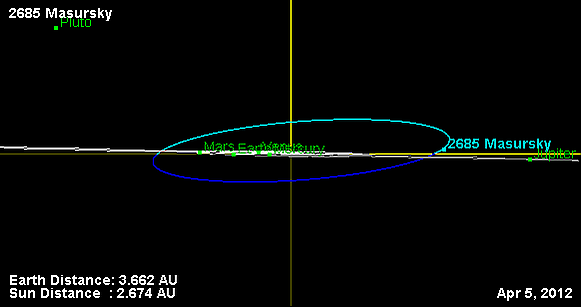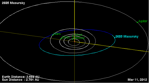 Орбита астероида Мазурский и его положение в Солнечной системе