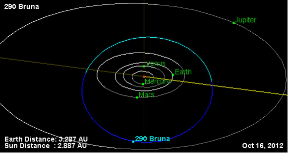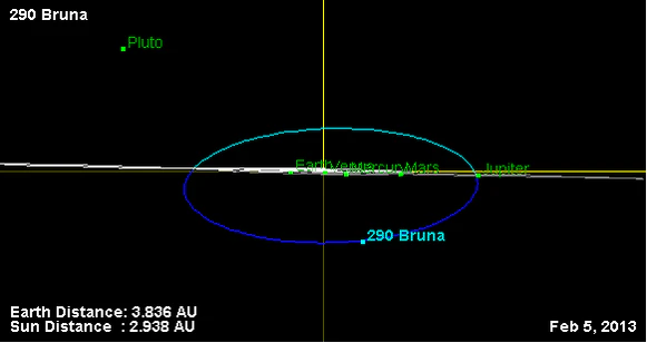 Орбита астероида Бруна и его положение в Солнечной системе