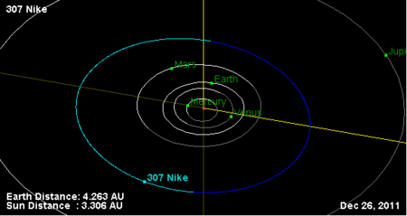 2 декабря 1972 года беспилотный космический аппарат Пионер-10, пересекая главный пояс астероидов, прошёл мимо астероида (307) Ника на расстоянии 8,8 млн км[2].