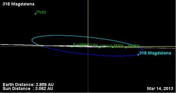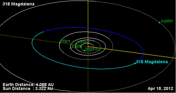 Орбита астероида Магдалена и его положение в Солнечной системе